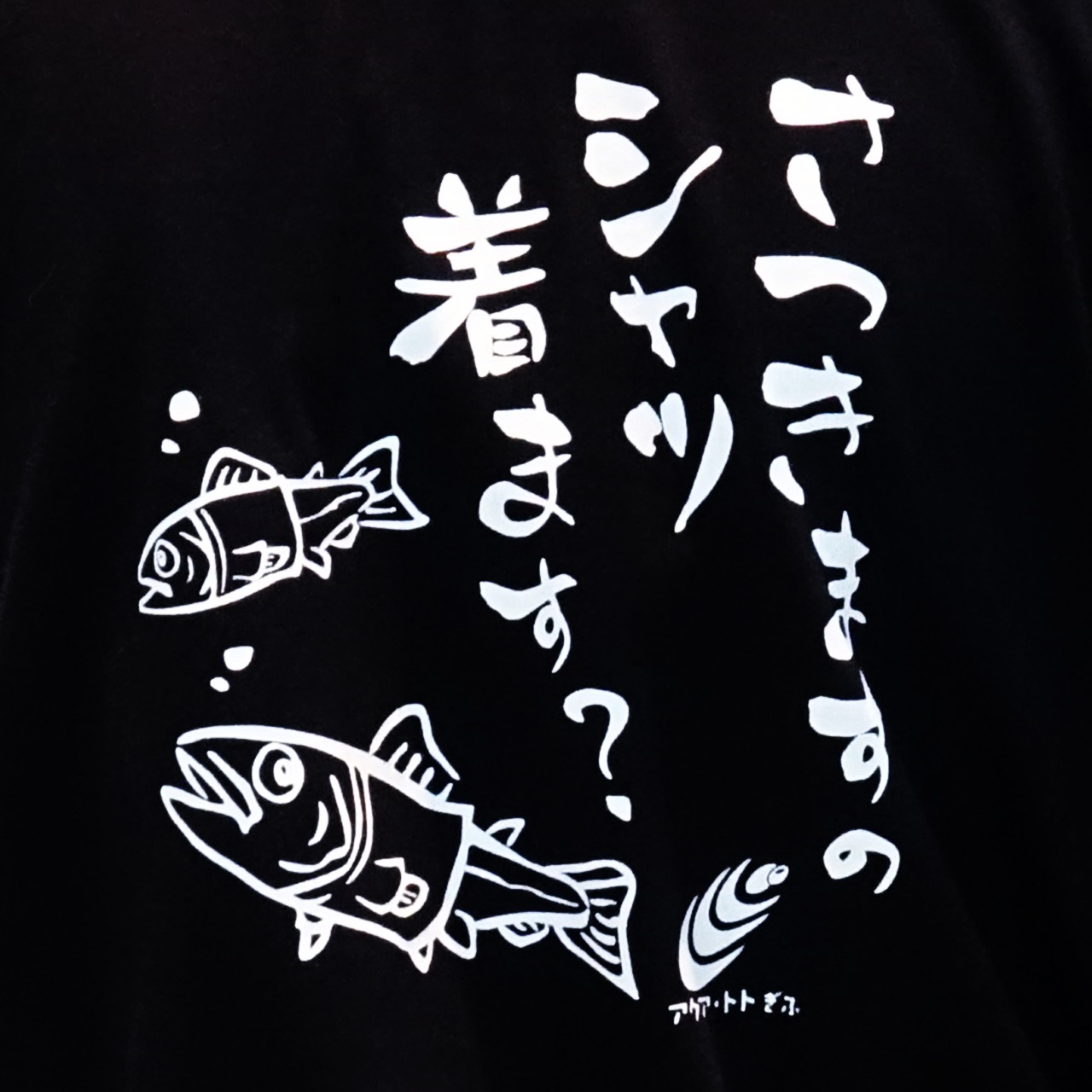 サツキマスのシャツ着ます?というダジャレ先行で開館当初に作ったTシャツですが、